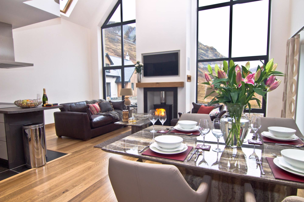- Look for floor-to-ceiling windows that provide uninterrupted views of the surrounding mountains or lochs.